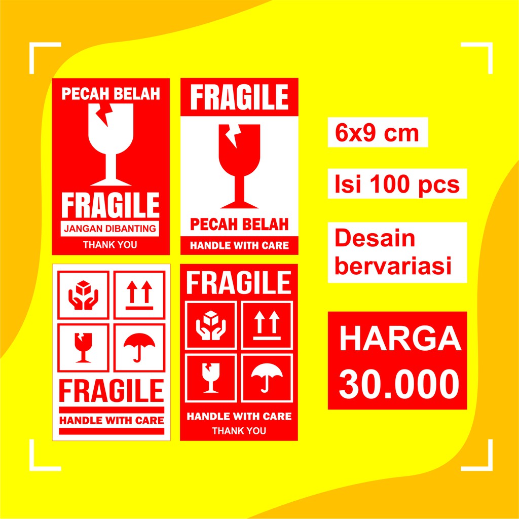 Stiker / Sticker Fragile / tahan banting 6x9 cm - 100 pcs