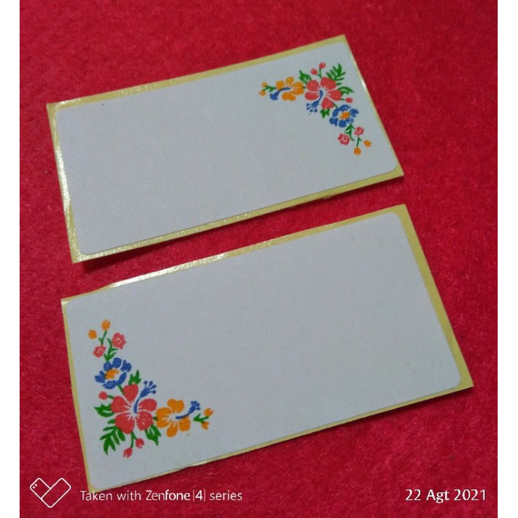 Untuk aneka kreasi. Stiker kosongan jadi bisa ditulisi sendiri atau pakai stempel. Ukuran label 3,8 x 7,5cm. Harga untuk 3 lembar 1 motif.