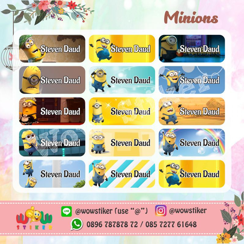 Stiker / Sticker Label Nama Anak Waterproof Minion