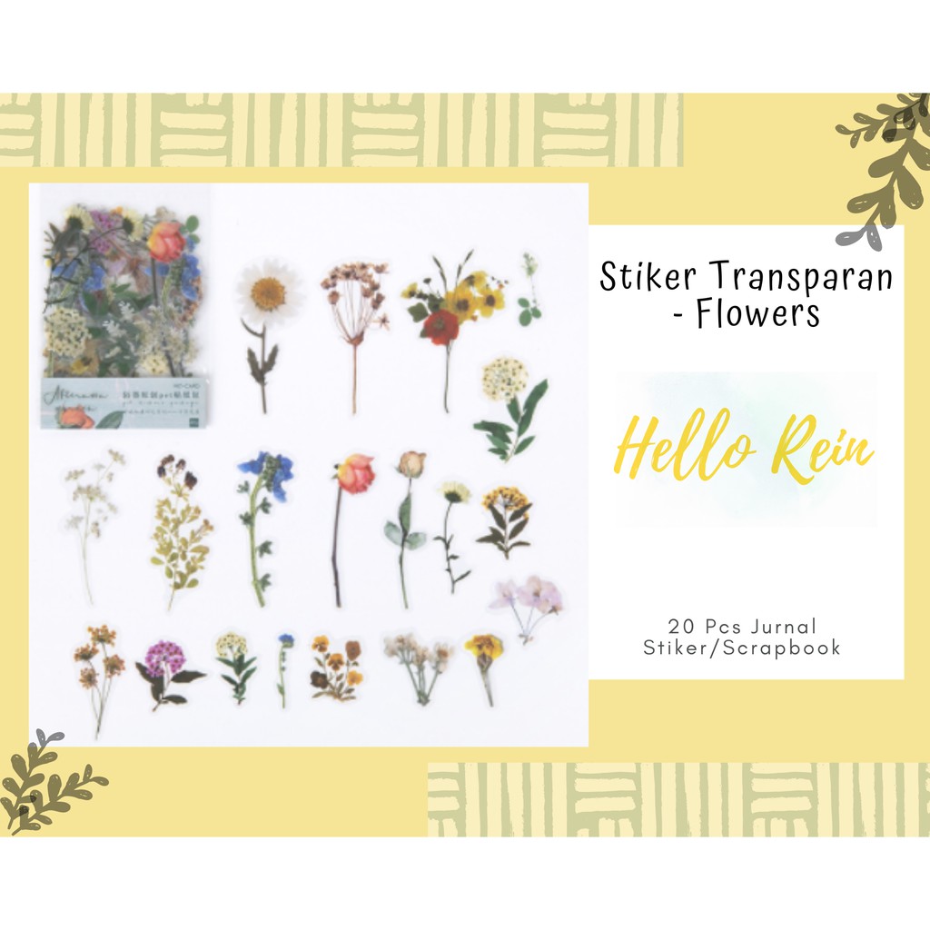 Terdiri dari 20pcs Stiker Transparan Bunga Bunga.