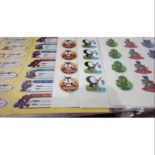 Stiker nama. Cocok utk brg2 anak bisa cetak pakai nama mandarin juga. Banyak pilihan gmbr..