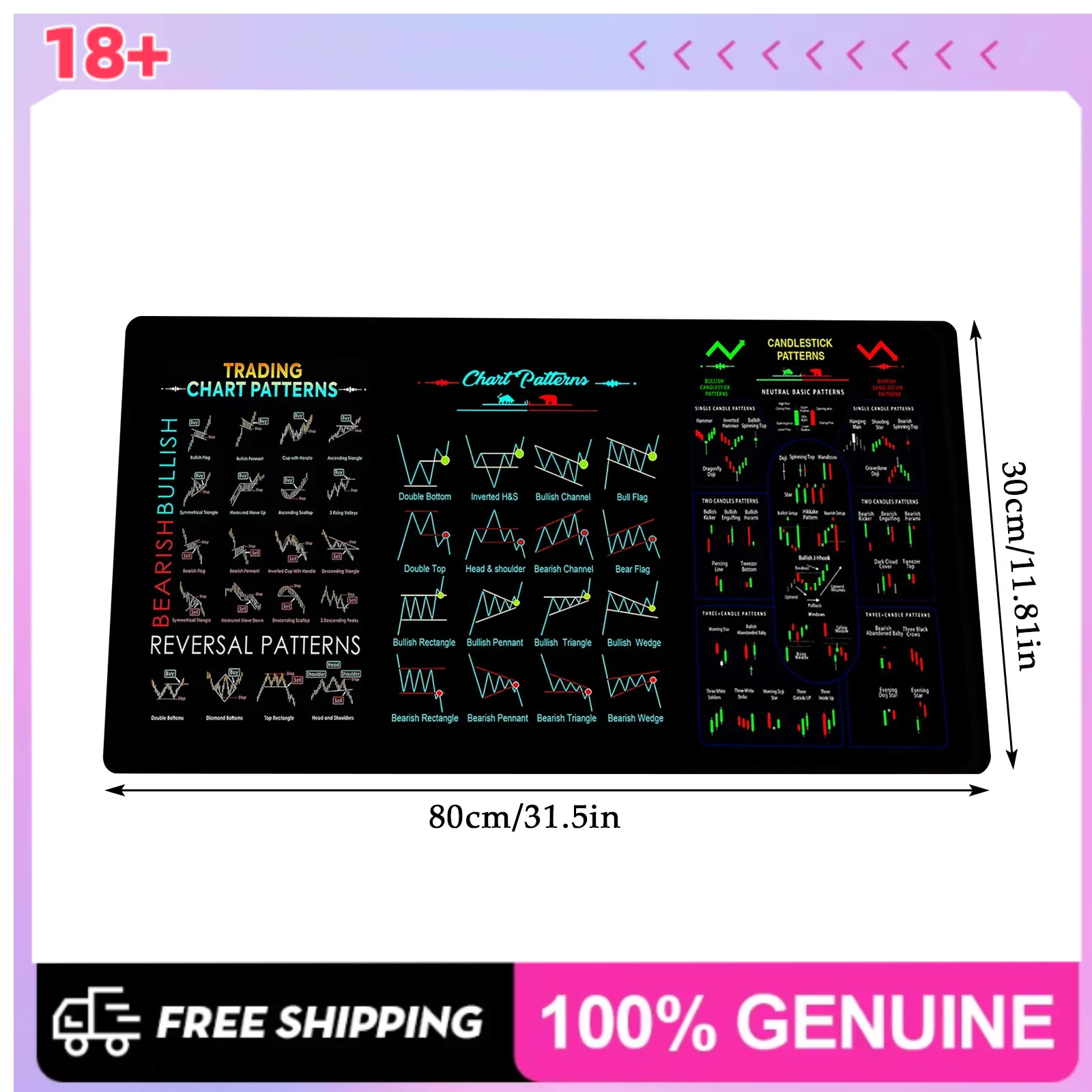Stock Market Mouse Pad, High-Quality Desk Mat Featuring Chart Patterns And Candlestick Charts