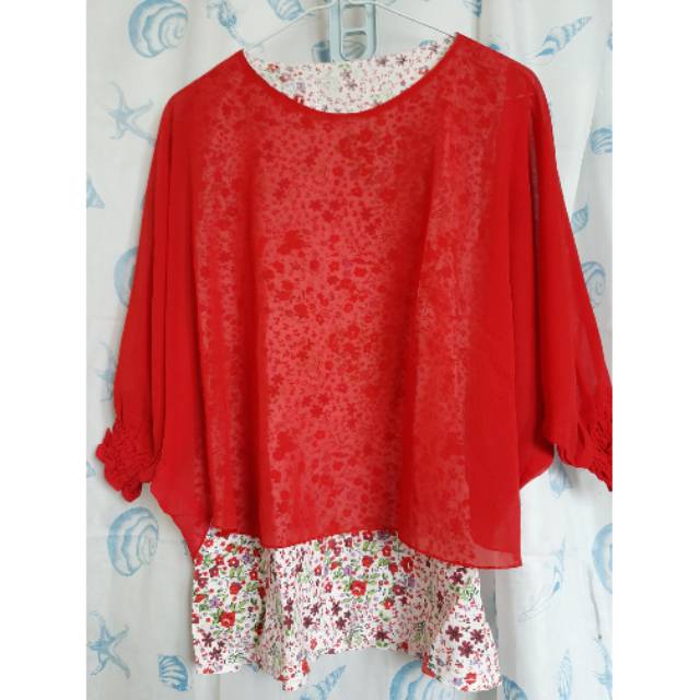Warna merah dan kombi katun kembang