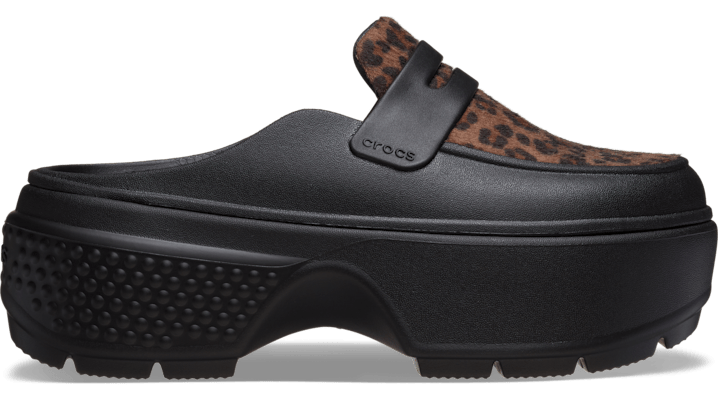 Tread heavily and let the ground know who’s boss. The Stomp Collection features stylish exaggerated soles that are excessively chunky and daring while still feeling light on your feet. With dramatic proportions that elevate its inherent boldness and all of the charms of personalization, the Stomp Collection lets you stomp to your own eye-catching beat. This Leopard Loafer version features a leopard print graphic on faux fur and a contoured sidewall upper, which makes it easy to slip on and also provides maximum support and comfort in the absence of a backstrap. Stomp Leopard Loafer Details: Slip-on loafer with contoured sidewall upper Leopard print graphic on faux fur Stylish penny keeper design Slimmer, more refined toe shape 2.2-inch | 5.6cm heel height Lightweight construction Exaggerated lug sole Molded Croslite™ upper Customizable with Jibbitz™ charms Iconic Crocs Comfort™: Lightweight. Flexible. 360-degree comfort.