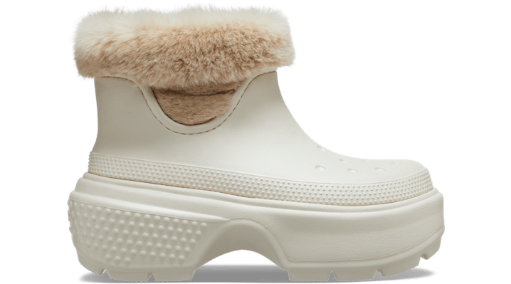 Tread heavily and let the ground know who’s boss. The Stomp Collection features stylish exaggerated soles that are excessively chunky and daring while still feeling light on your feet. With dramatic proportions that elevate its inherent boldness, the Stomp Collection lets you stomp to your own eye-catching beat. Stomp Lined Boot Details: 2.2-inch | 5.5cm height, measured from floor to heel rest Lightweight construction Exaggerated lug sole Fully lined interior and collar Molded Croslite™ upper Mid-ankle collar height for a democratic fit Dual Crocs Comfort™: Blissfully supportive. Soft. Cradling comfort.