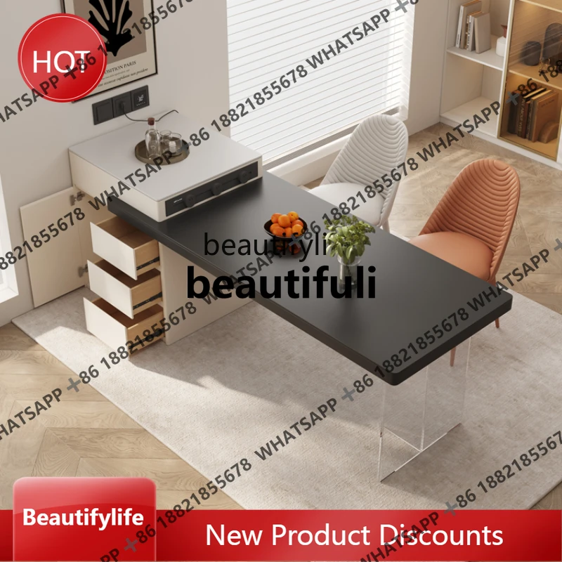 Stone Plate Kitchen Island Dining Table Integrated Retractable Rectangular Minimalist Cream Wind Kitchen Island