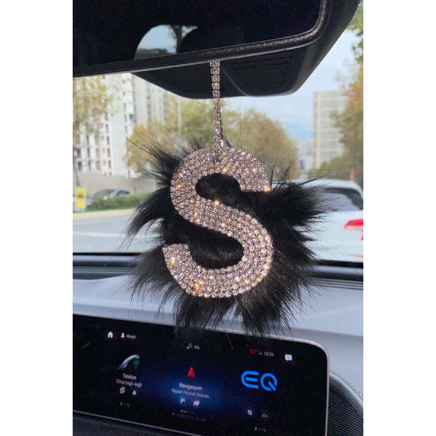 Stone Rear View Mirror Necklace Accessory With Black Feather S Letter
