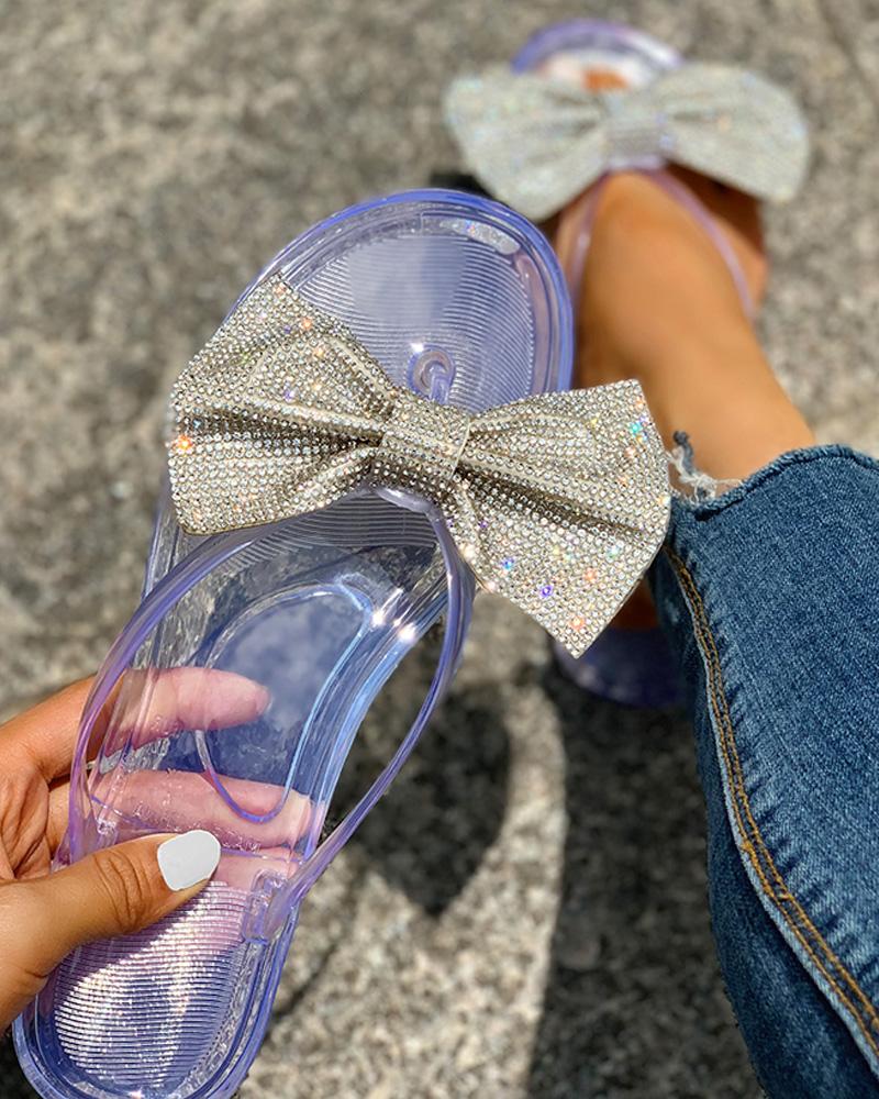 Studded Bowknot Design Open Toe Sandals, Purple