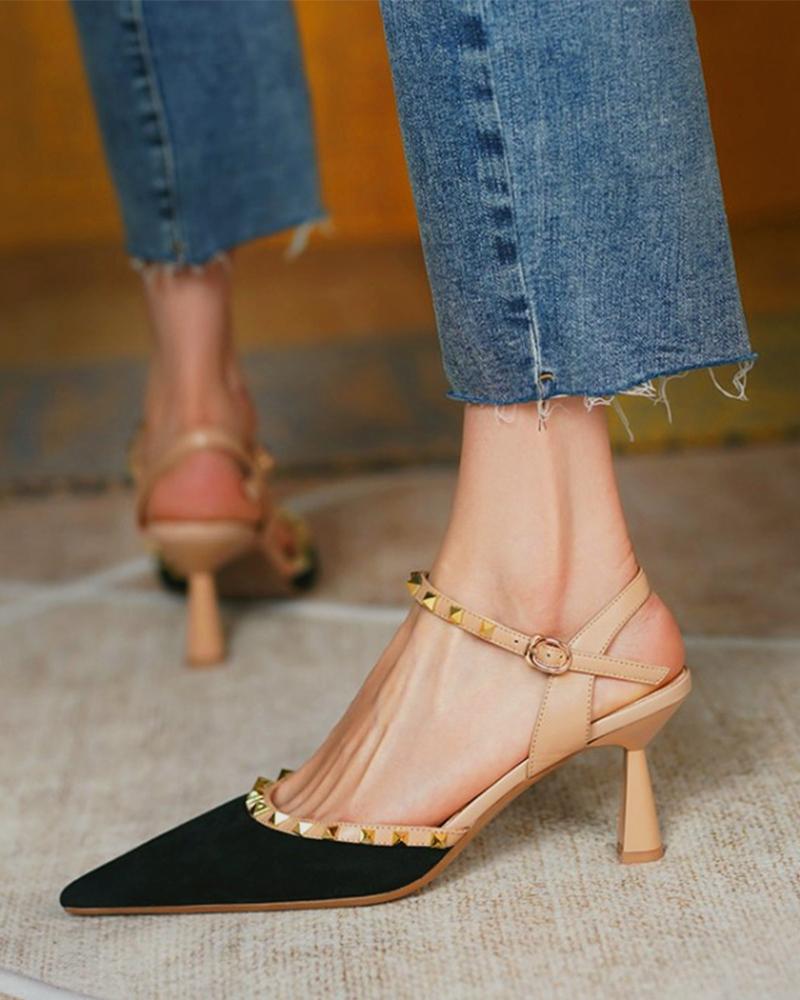 Studded Decor Suede Patch Pointed Toe Heels, Black