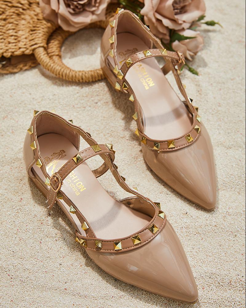 Studded Pointed Toe Slip On Mules, Apricot
