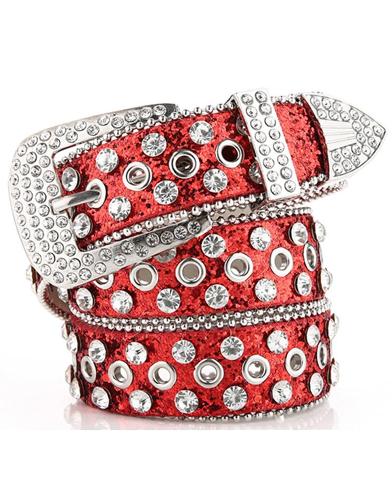 Studded Rhinestone Eyelet Buckled Fashionable Party Wedding Gift Blet, Red