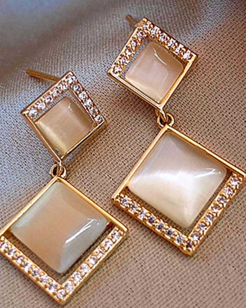 Studded Rhinestone Geo Drop Earrings, Gold