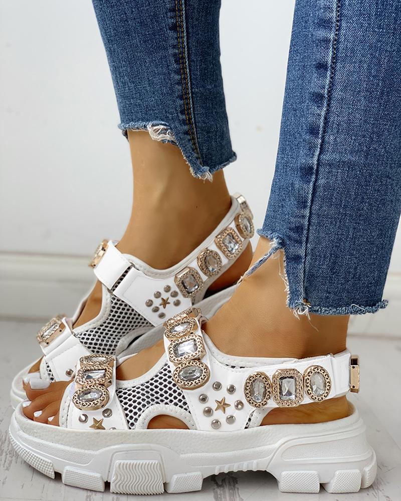 Studdedt Design Rivet Platform Muffin Sandals, White