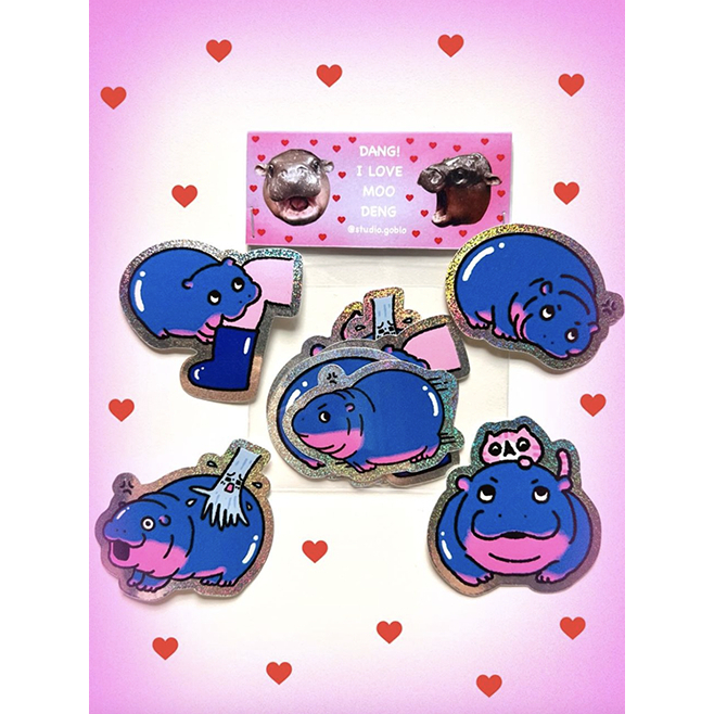 sticker pack berisikan 5 pcs sticker die cut moo deng dalam gaya yang berbeda-beda