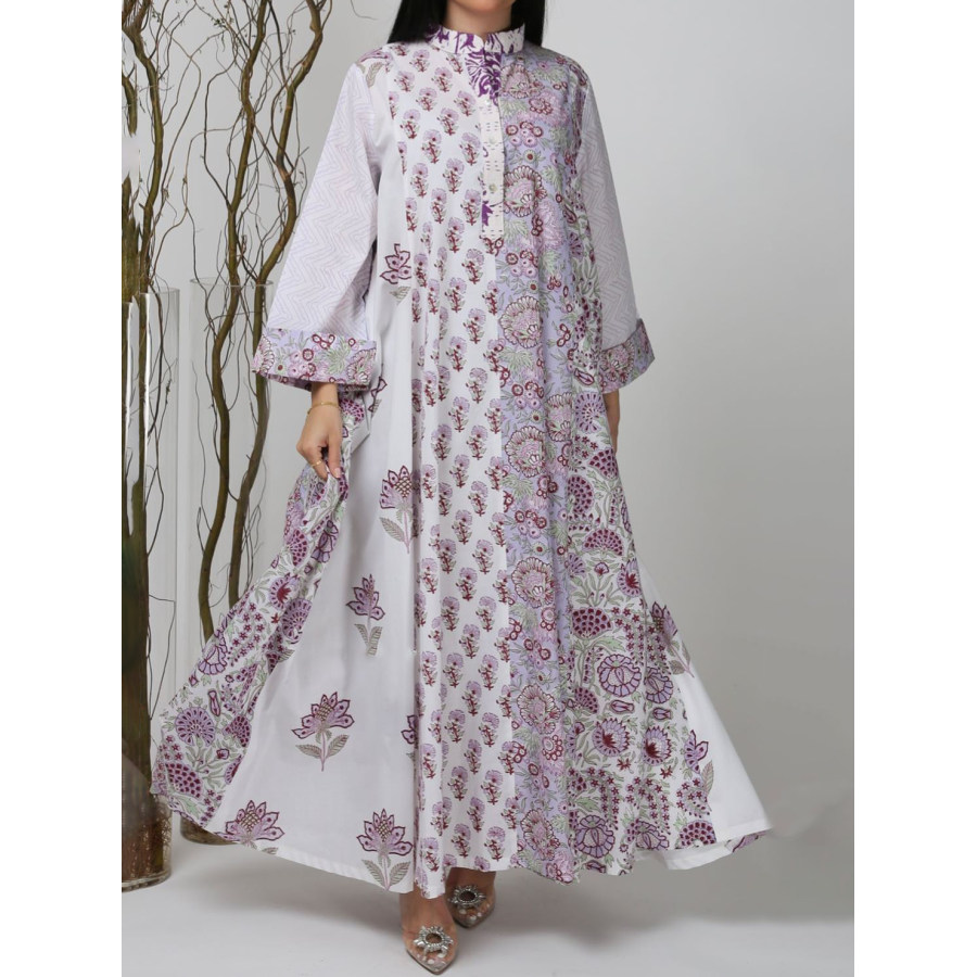 women dresses,stylish contrast floral print robe dress
