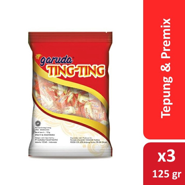 Ting-Ting Garuda 125gr x3 merupakan permen salut kacang manis yang diproses dengan higienis sehingga terjaga kualitasnya. Ting-Ting Garuda nikmat dijadikan cemilan sembari mengisi waktu luang.