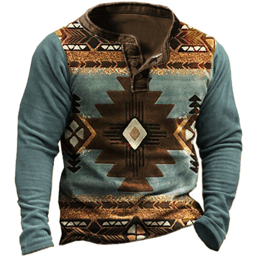 Sudadera Azteca Con Cuello Henley Para Hombre