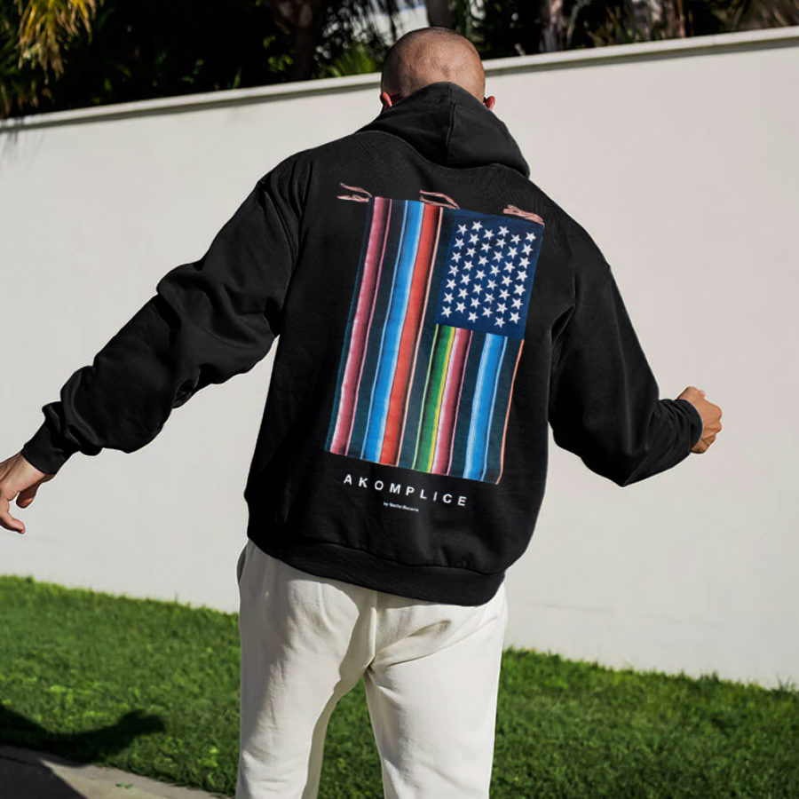 Sudadera Con Capucha Extragrande Informal Con Bandera Americana Del Arcoíris Para Hombre