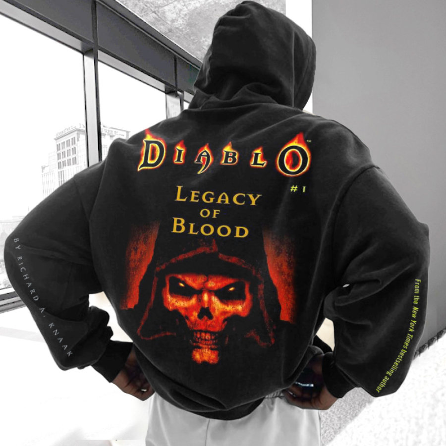 Sudadera Con Capucha Extragrande Para Hombre Con Estampado Vintage Diablo