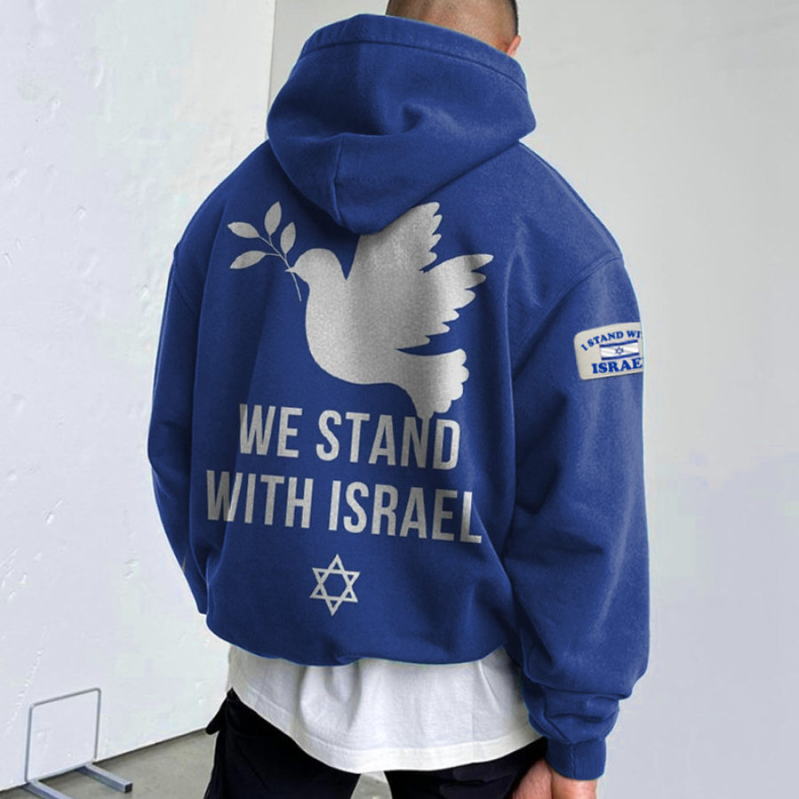sudadera,sudadera con capucha extragrande para hombre we stand with israel peace print casual azul