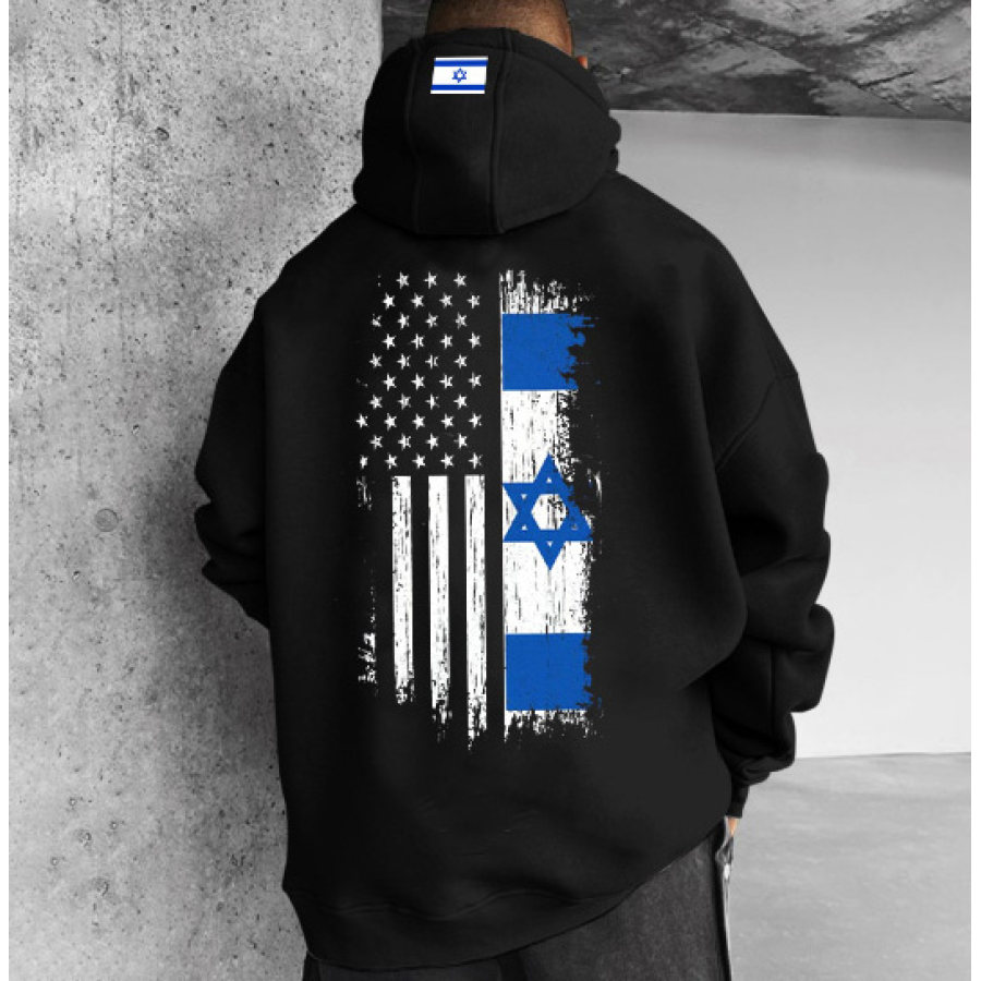 Sudadera Con Capucha Informal Extragrande Con Estampado De Bandera Israelí Americana Para Hombre