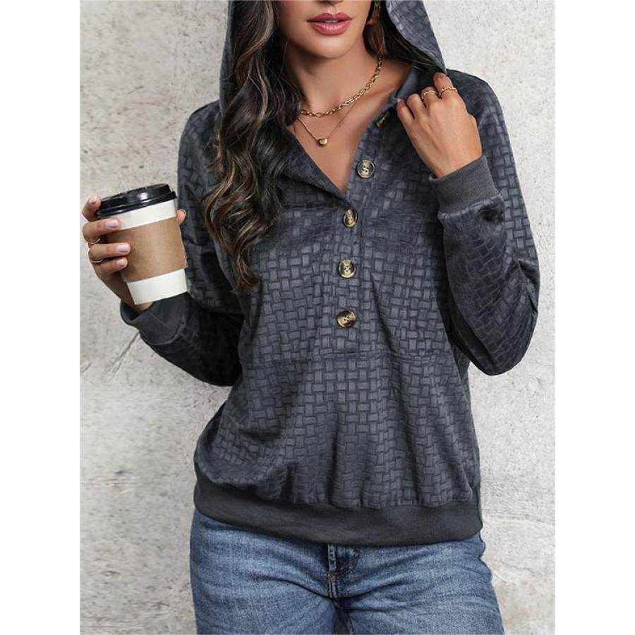 Sudadera Con Capucha Informal Con Textura Retro Para Mujer