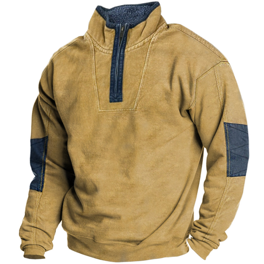 Sudadera Informal Con Parches En Los Codos Y Cremallera En Contraste Retro Para Hombre