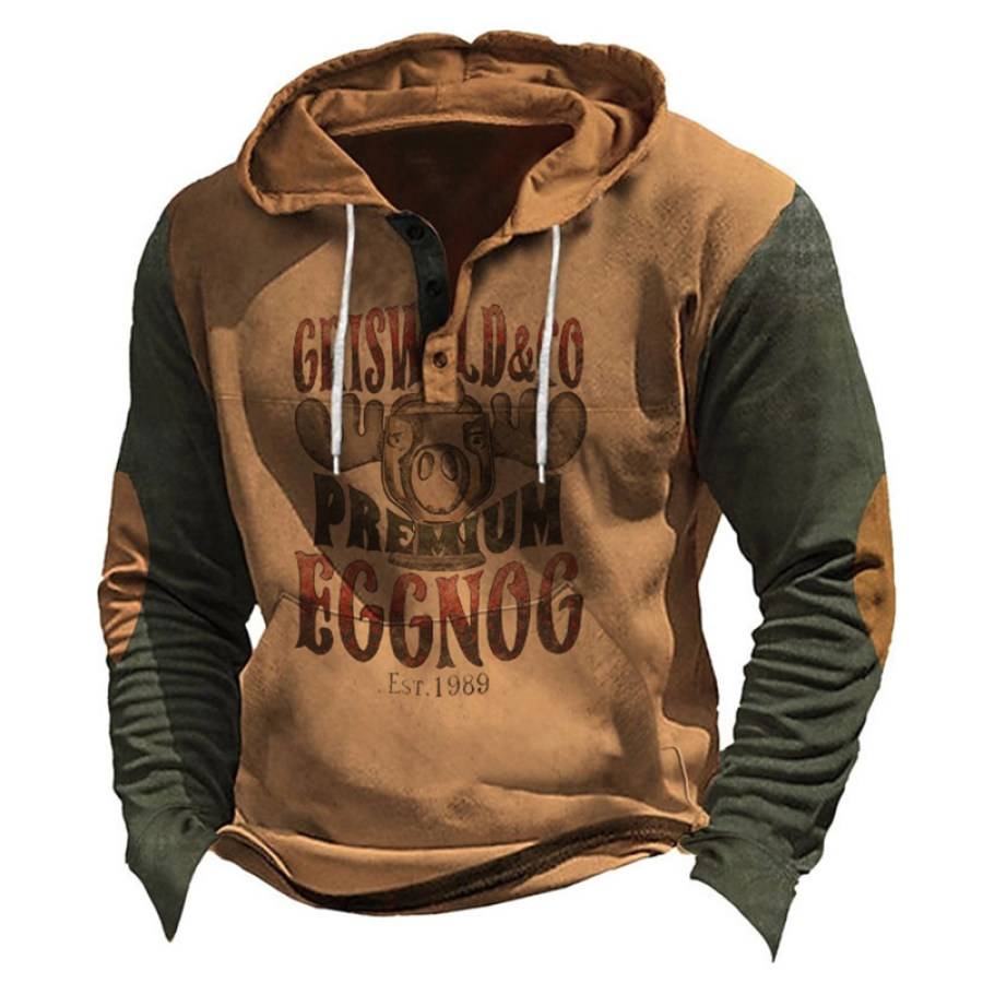 sudadera,sudadera retro para hombre con capucha y botones estampados a la moda