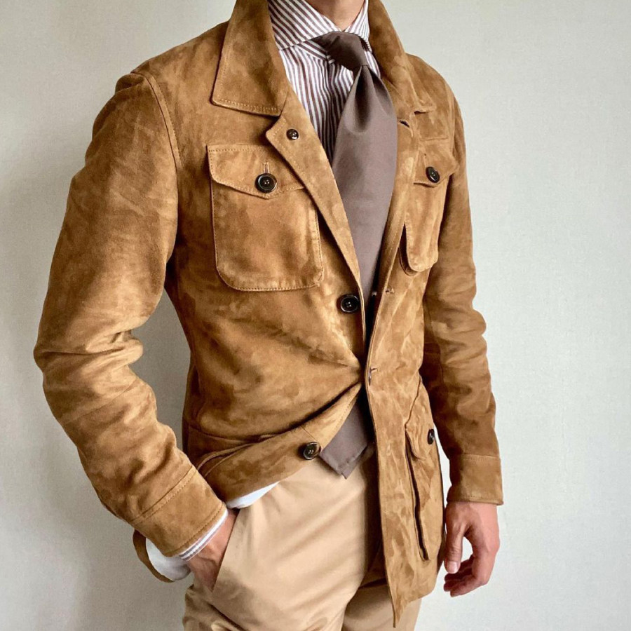 Suede Multi-pocket Autumn And Winter Jacket