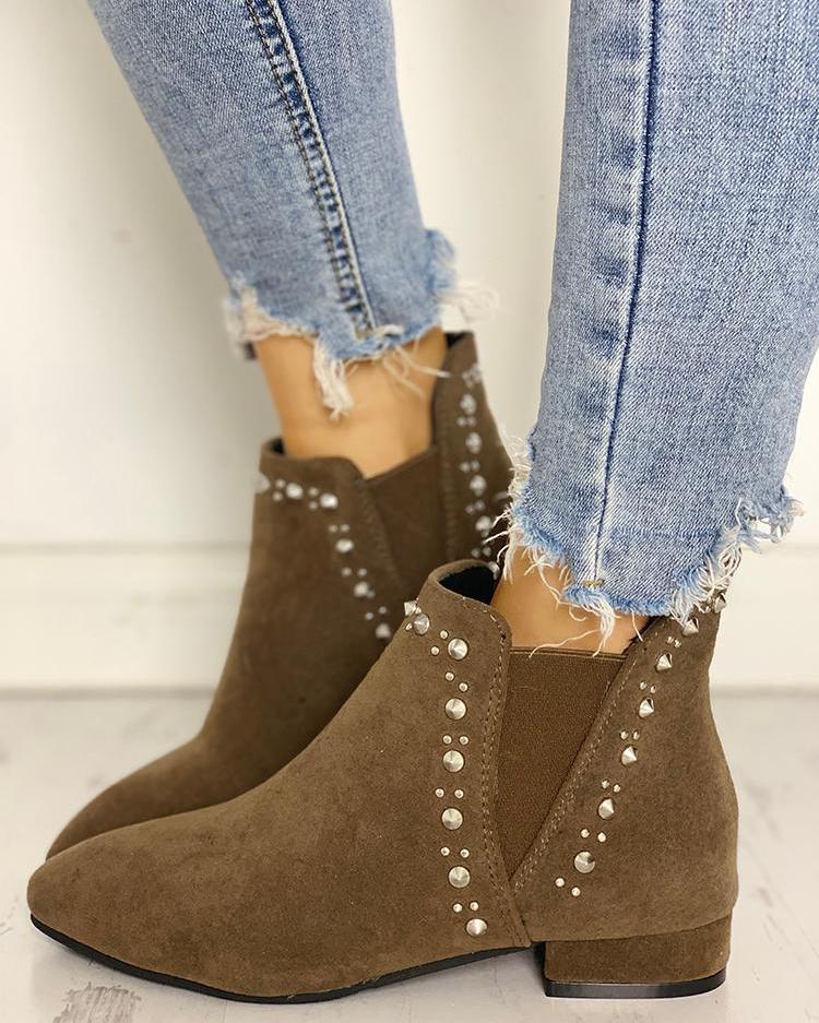 Suede Pointed Toe Rivet Embellished Boot, Khaki