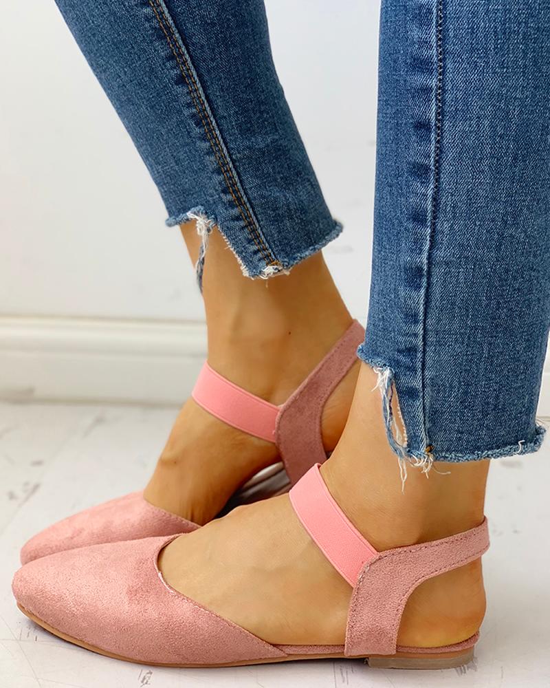 Suede Pointed Toe Slingback Flat Shoes, Pink