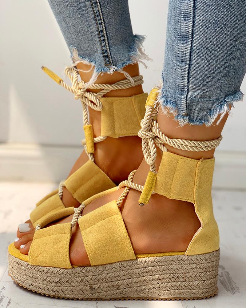 Suede Rope Design Espadrille Wedge Sandals, Yellow
