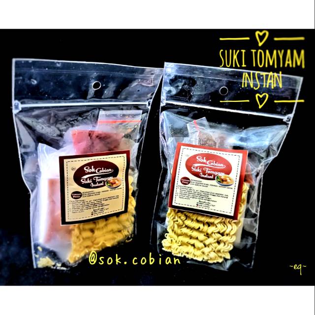 Suki Tomyam Instan Homemade buatan Sok.Cobian untuk porsi personal/single pack ini terdiri dari 6-7 bites bakso seafood yang terdiri dari Crabstick, Tofu, Chikuwa, bakso ikan, bakso salmon/bakso sayuran, cheese dumpling, fish roll tergantung dari stockan yang tersedia. Insya Allah bakso seafood ini halal, enak, berkualitas dan praktis. selain itu pada kemasan suki tomyam sok.cobian ini juga tersedia saus racikan, mie, bumbu kaldu atau bumbu tomyam homemade maka dari itu kami tidak menjual bumbunya saja. pembelian sepaket 1 pack dgn bakso seafood.