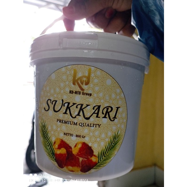 sukari yang dikemas dengan ember, dan jelas sekali yang digunakan adalah sukari saudi dates jadi insyaAllah tidak akan ditemukan kurma yang busuk di dalam ember.