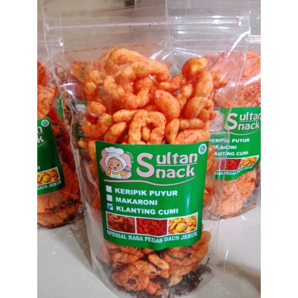 makaroni renyah, klanting cumi dan keripik Puyur semuanya spesial rasa pedas daun jeruk