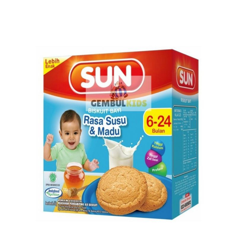 SUN Biskuit Bayi dengan tekstur berpori mudah lumer di mulut, sehingga dapat menstimulasi kemampuan menggigit, mengunyah, dan tumbuh gigi. Bentuk biscuit memungkinkan Adek Kecil belajar koordinasi tangan saat menggenggam dan menjimpit benda.