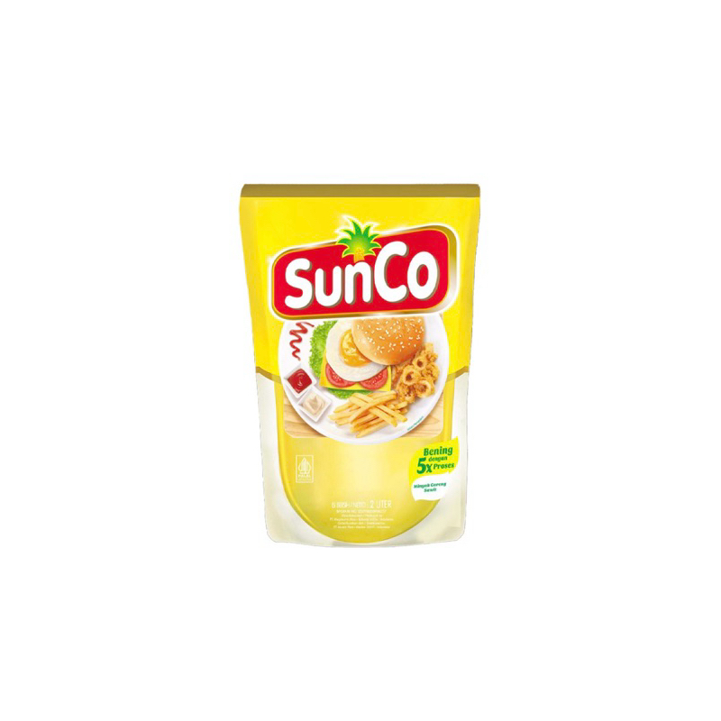 SunCo Minyak Goreng 2 L adalah minyak goreng yang diproduksi dari buah kelapa sawit segar pilihan dan difortifikasi dengan vitamin A. Diproses dengan teknologi mutakhir melalui 5 tahap pemrosesan, yakni 3 kali proses pemurnian dan 2 kali proses penyaringan. Menghasilkan minyak goreng yang baik dan berkualitas.