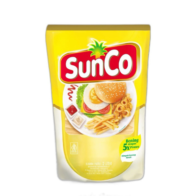 SunCo Minyak Goreng 2 L adalah minyak goreng yang diproduksi dari buah kelapa sawit segar pilihan dan difortifikasi dengan vitamin A. Diproses dengan teknologi mutakhir melalui 5 tahap pemrosesan, yakni 3 kali proses pemurnian dan 2 kali proses penyaringan. Menghasilkan minyak goreng yang baik dan berkualitas.
