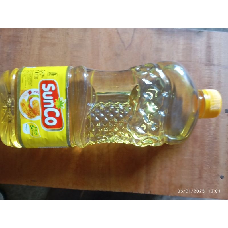 minyak goreng merk Sunco kemasan botol 1 liter.