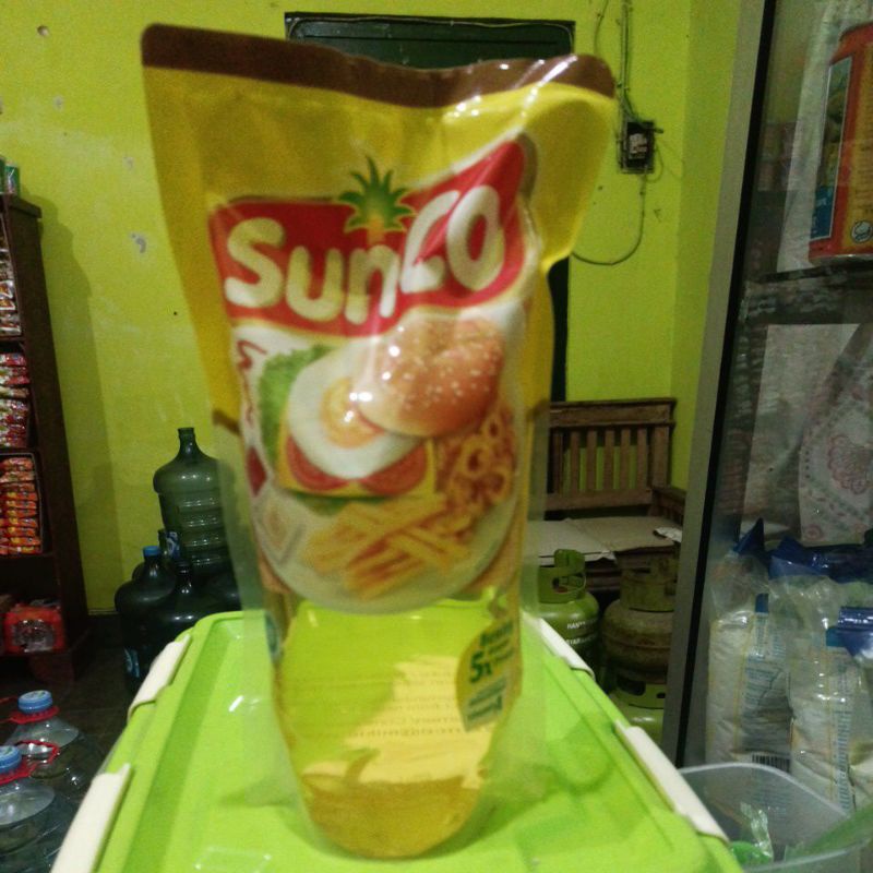 Minyak Goreng Sunco 1 liter. Menempel sedikit, lebih iriit.