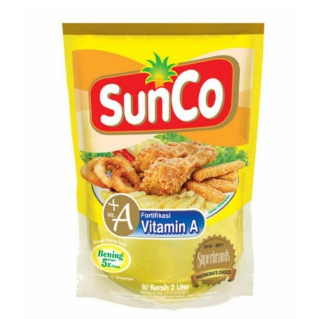 SunCo Minyak Goreng 2 L adalah minyak goreng masak yang diproduksi dari buah kelapa sawit segar pilihan dan difortifikasi dengan vitamin A. Diproses dengan teknologi mutakhir melalui 5 tahap pemrosesan, yakni 3 kali proses pemurnian dan 2 kali proses penyaringan sehingga menghasilkan minyak goreng yang baik dan berkualitas. Adapun ciri minyak goreng yang baik adalah warna minyak yang bening, tidak mudah beku, dan karakternya seperti air. Warna Sunco yang bening dan tidak cepat hitam atau teroksidasi dapat meminimalkan risiko kanker. Berbeda dengan minyak goreng sawit lain, Sunco tidak mudah beku karena mengandung asam lemak jenuh terendah yang dapat meminimalkan peningkatan kolesterol jahat. Tak hanya itu karakter Sunco yang seperti air, tidak lekat, dan tidak menyerap berlebih di makanan, membuat kegiatan makan lebih nyaman tanpa rasa gatal di tenggorokan.