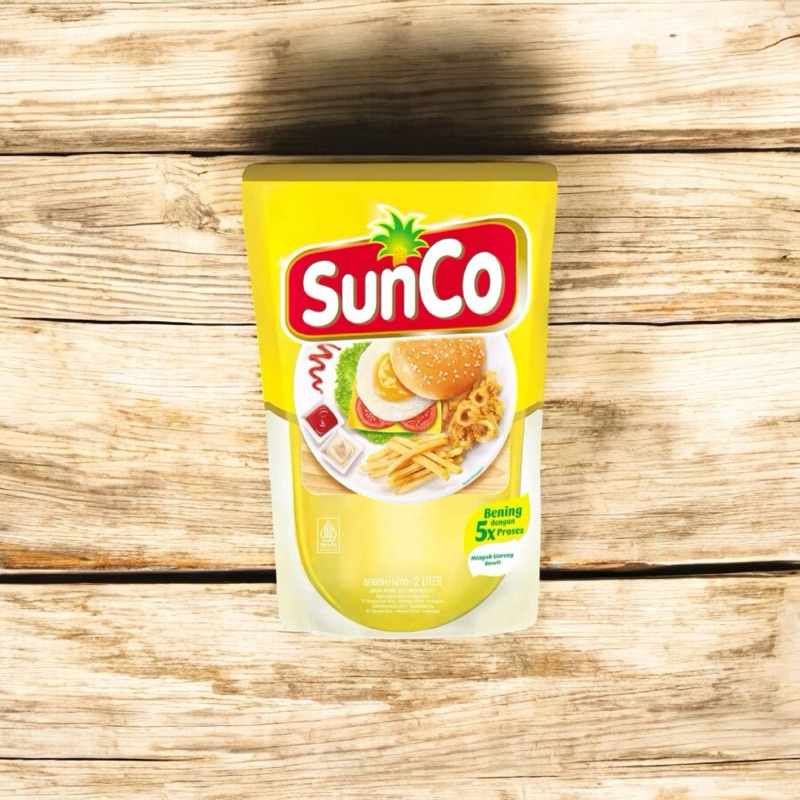 Sunco Minyak Goreng 2 liter adalah minyak goreng yang dibuat dari buah kelapa sawit segar, difortifikasi dengan vitamin A, dan diolah dengan teknologi modern melalui 5 tahap proses. Proses tersebut meliputi 3 kali pemurnian dan 2 kali penyaringan, menghasilkan minyak goreng yang bening, tidak mudah beku, dan memiliki tekstur seperti air. Minyak goreng Sunco juga diklaim tidak lekat dan tidak menyerap berlebihan di makanan.