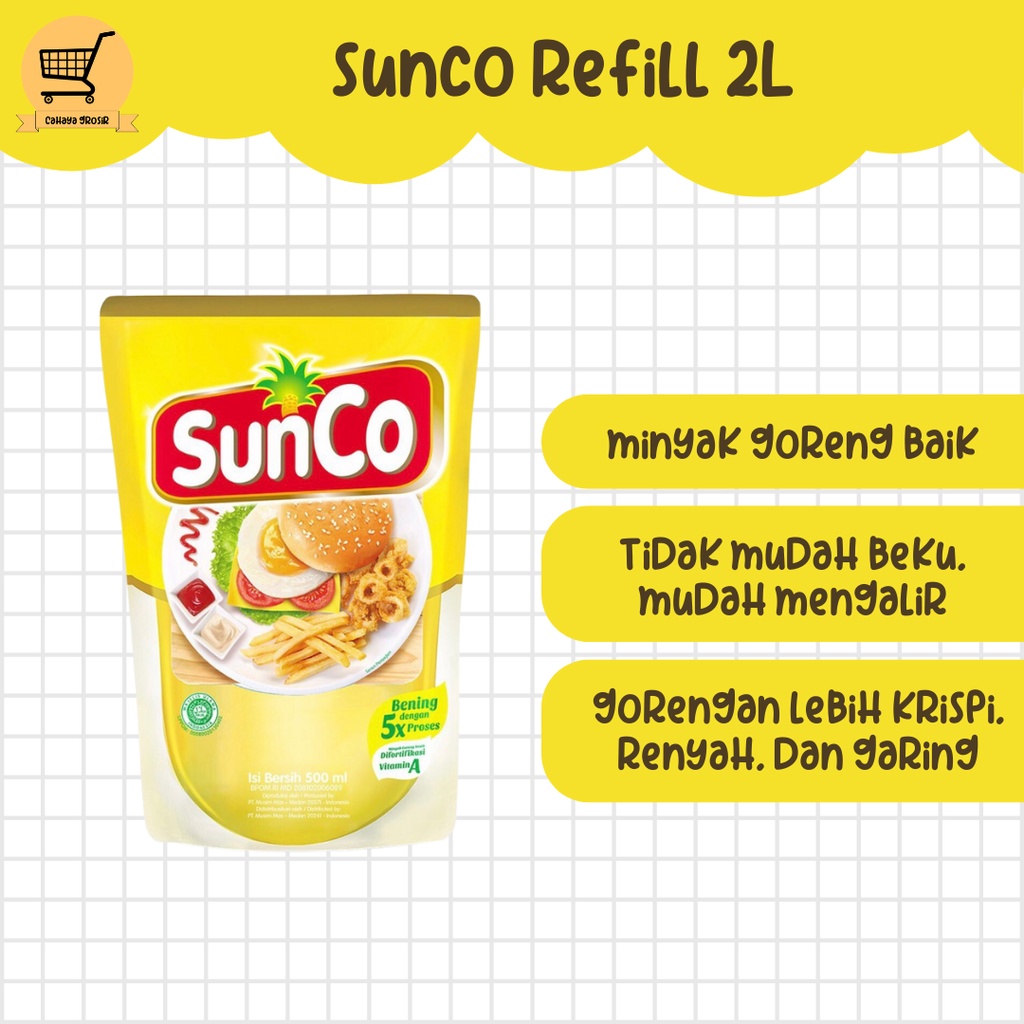 Sunco Refill 2L Diproduksi dari buah kelapa sawit segar pilihan dan difortifikasi Vitamin A.