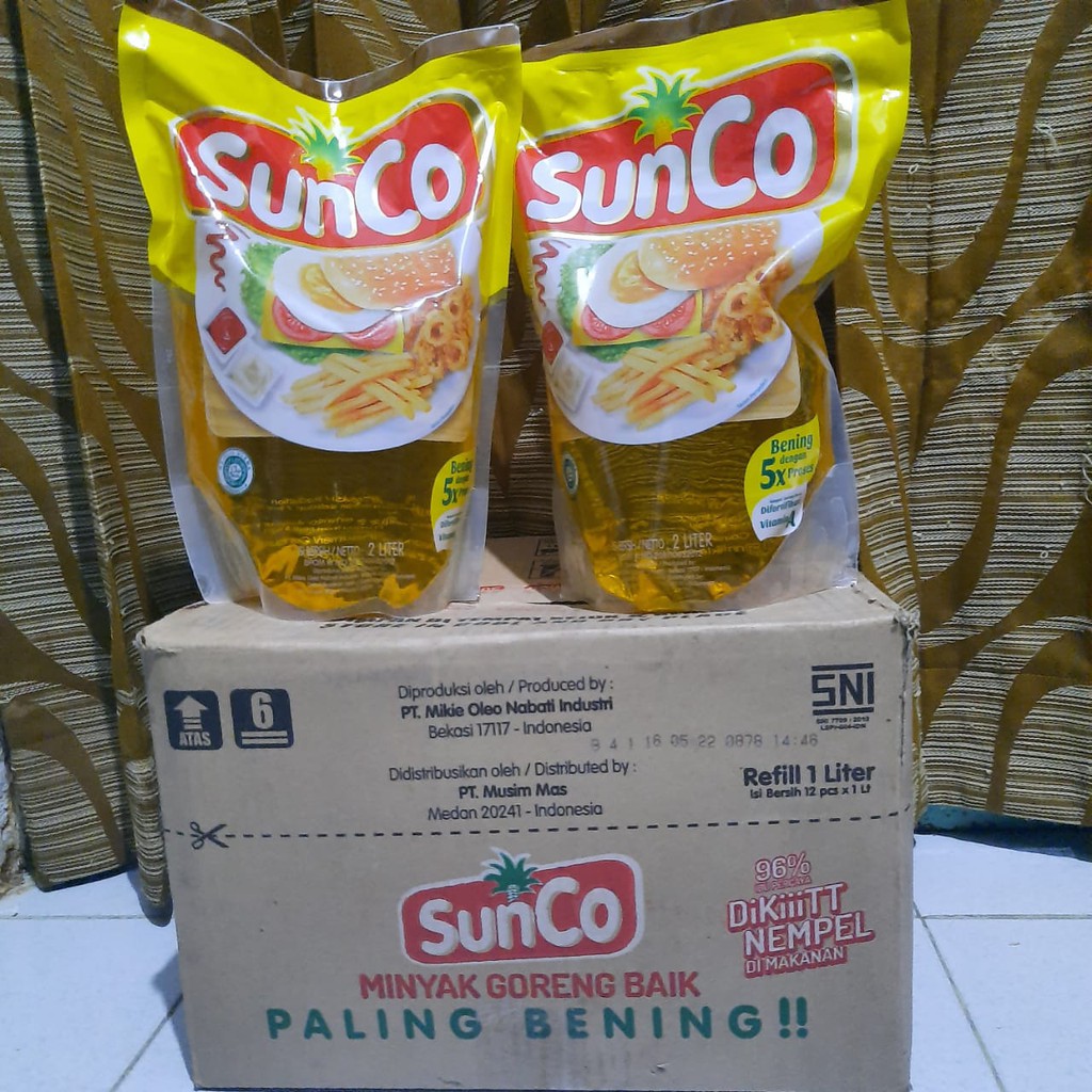 Sunco Refill 2L Diproduksi dari buah kelapa sawit segar pilihan dan difortifikasi Vitamin A.