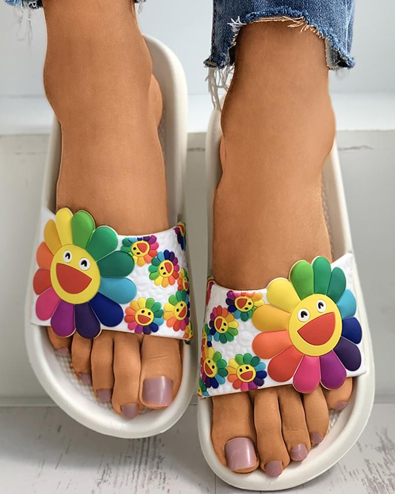 Sunflower Pattern Candy Color Slider Sandals, White