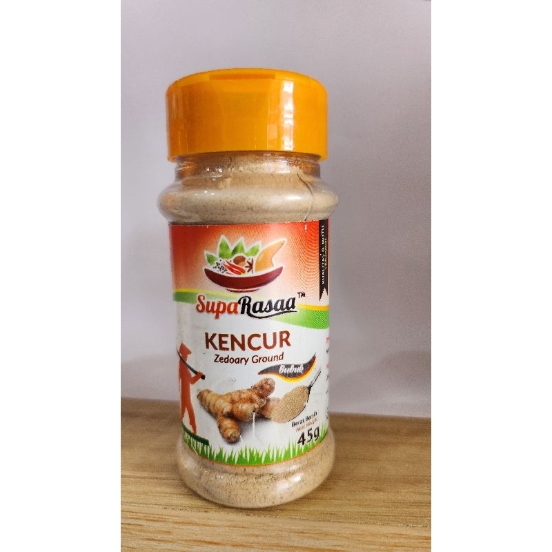 SupaRasaa Kencur Bubuk Botol adalah kencur bubuk, salah satu jenis empon empon / tanaman obat yg tergolong dalam suku temu temuan, cocok digunakan sebagai penambah bumbu masakan. Rimpang / rizoma tanaman ini mengandung minyak atsiri dan alkaloid yg dimanfaatkan sebagai stimulan. Kencur memiliki banyak manfaat, seperti sering digunakan sebagai obat sakit tenggorokan, sakit kembung, masuk angin, obat batuk, penambah nafsu makan, disentri, infeksi bakteri, sakit perut, ekspektoran, dll. Menggunakan kemasan botol yg praktis dan mudah digunakan pada setiap masakan.