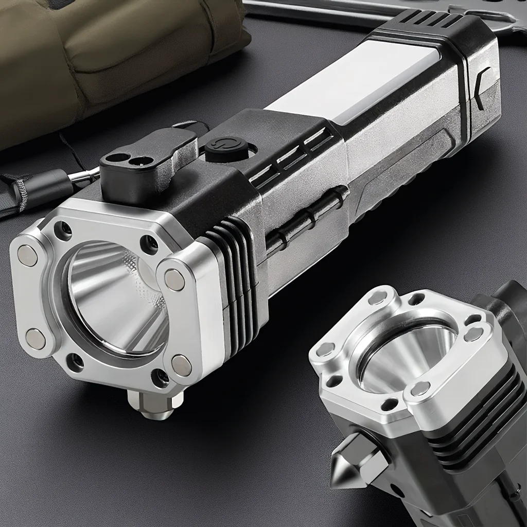 Super Bright Rechargeable LED Flashlights Automobile Safety Hammer Car Multi Function Torch Light Car Window Breaking Light