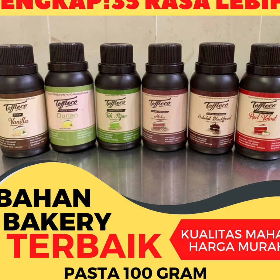 Super Promo PASTA PERISA TOFFIECO 100 GRAM TERLENGKAP! 39 RASA! SH-31-10-23 Halo Pejuang Dapur, Kami dari Distributor Toffieco Hollmann menjual produk pasta dan perisa terbaik yaitu pasta toffieco. Produk kami juga larut pada cairan, jadi bisa digunakan untuk kebutuhan lain selain baking. Produk kami tersedia dalam 4 ukuran Yaitu: -100 Gram -250 Gram -500 Gram -1 Kilogram Jika Pejuang Dapur ingin membeli dalam jumlah yang besar kami menyediakan harga dan produk grosir. semua Produk Ready Stock!. Jika pemesanan lewat Jam 2 kami akan kirim di esok harinya dan untuk pemesanan di Hari Minggu akan kami kirim di hari Senin, Salam Baking dan selamat berjuang di dapur! - Fast respon jam kerja Senin - Sabtu pukul 8.00 - 16.00, Minggu atau hari libur Off - Mohon mencantumkan warna/gambar/varian pilihan dan cadangannya (jika ada) di kolom pemesanan ya. Jika tidak mencantumkan pilihan, maka akan kami kirimkan sesuai stok yang ready!!! - Pengiriman pada Hari yang sama (malamnya). - Jika barang yang di pesan kosong dan tidak ada respon selama 1x24 jam maka akan di kirim secara random. - Periksa kembali NOMOR HP (TELP) & ALAMAT LENGKAP. Guna mempercepat dan memperlancar pengiriman. - BARANG YANG SUDAH DI BELI TIDAK BISA DI KEMBALIKAN. - Gudang kita ada di Beberapa Alamat Jabodetabek... Jadi pengiriman tidak selalu sesuai alamat toko ini yaaa.. >>>> MEMBELI = SETUJU
