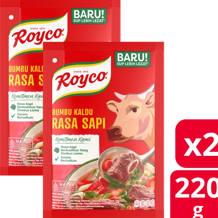 Super Promo Royco BUMBU KALDU Penyedap Makanan, Penyedap Rasa SAPI Beryodium 220G x2