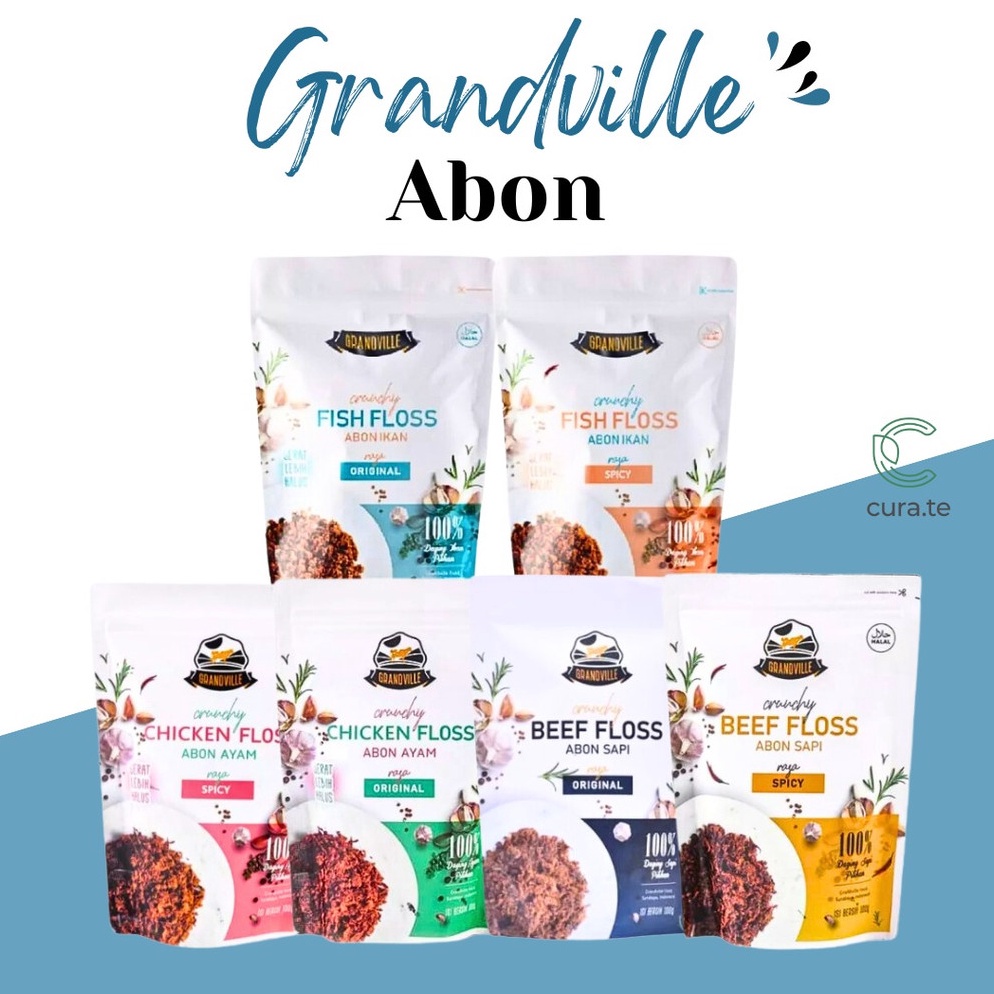BUDAYAKAN MEMBACA SEBELUM MELAKUKAN PEMBELIAN Hallo kak produk kita restock lagi nih Pasti sudah tahu kan Super Promo.. GRANDVILLE ABON SAPI AYAM ASLI CRUNCHY | MPASI MAKANAN INSTAN SNACK NVB kesukaan kalian semua ini? Ready stock BURUAN DI BORONGGG, STOCK TERBATAS!! HARGA PROMO UNTUK 10 PEMBELI PERTAMA! READY STOCK, LANGSUNG ATC YA ^^ Tersedia 6 varian rasa: - Ayam Ori - Ayam Spicy - Sapi Ori - Sapi Spicy - Ikan Ori NEW - Ikan Spicy NEW Netto: 100g Tersedia juga Popcorn Grandville dengan 2 varian rasa - Crunchy Floss Netto 50g - Hokaido Milk Netto 50g - Bumboo Abon Ayam Netto 100g - Bumboo Abon Sapi Netto 100g Netto 50g ------------------------------------------------------------------------------ Grandville Abon adalah pelopor Abon Crunchy pertama di Indonesia, diolah dengan menggunakan kualitas daging sapi & ayam terbaik. Grandville abon dapat digunakan untuk makanan pendamping si Kecil (1tahun +) yang susah makan, karena rasanya yang disuka dan teksturnya yang renyah selalu menjadi makanan peningkat nafsu makan idaman anak-anak. Grandville abon cocok untuk dikonsumsi sebagai snack karena teksturnya yang crunchy dan dipadukan dengan rasa gurihnya tidak pernah gagal untuk membuat penikmatnya kecanduan. ✅ Kualitas daging sapi & ayam terbaik ✅ Tanpa MSG ✅ Tanpa bahan pengawet ------------------------------------------------------------------------------ Grandville abon cocok dijadikan makanan tambahan/pemanis untuk menu-menu dibawah ini : - Nasi Rames - Nasi Kuning - Nasi Campur - Roti Abon - Roti Bakar - Bakpao isi abon - Bubur ayam/sapi FAQ : 1. Mengapa bisa tahan lama walaupun tanpa pengawet? - Grandville abon melalui proses pengeringan maksimal sehingga minim minyak yang tersisa, selain itu Grandville abon diolah menggunakan vacum dan packaging double seal. 2. Menga bisa gurih walaupun tanpa MSG? - Grandville abon menggunakan bahan alami olahan kelapa sebagai penguat rasa serta garam dan bawang sebagai pelengkap 3. Menggunakan bagian daging apa? - Grandville abon dibuat menggunakan bagian has dalam/tenderloin karena teksturnya yang tidak berlemak ------------------------------------------------------------------------------ - Bangun Gaya Hidup Sehatmu #BersamaCurate - NB : Mohon untuk mengkonfirmasikan apabila barang sudah diterima ya. Terima kasih. >>>> SELAMAT BERBELANJA